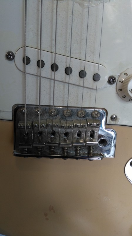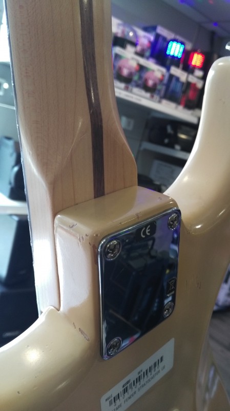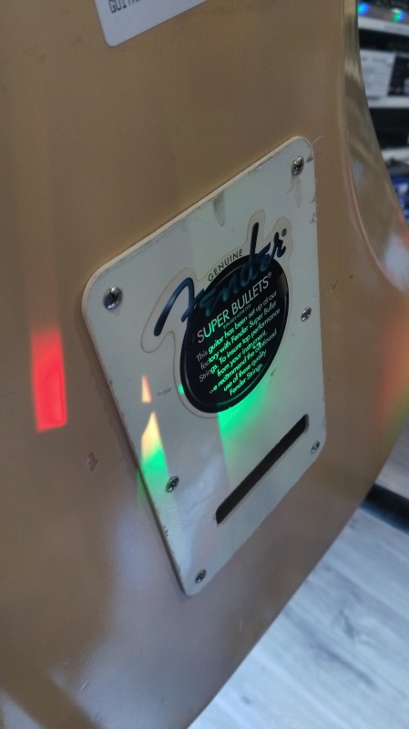 Elle a quelques pocs mais si rien n'est fendu... tout dépend du prix. Et la tige de vibrato elle est où ?
