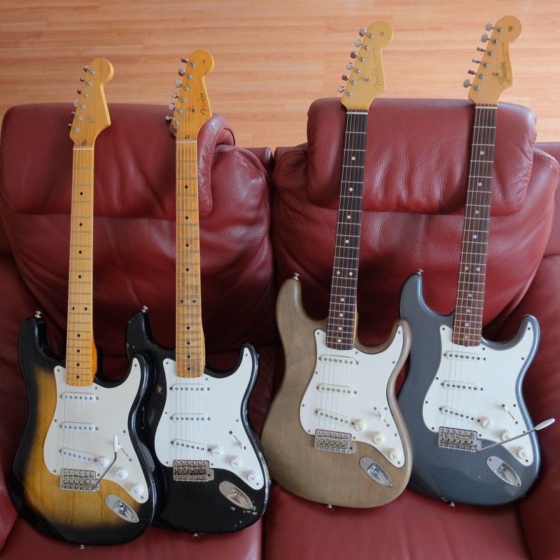 Mais sur le fond, comment pourrait-il en être autrement, ce sont deux guitares très différentes : le support plaque en métal vs pickguard sur cavité, chevalet/vibrato, forme du manche et du corps, micros, câblage?