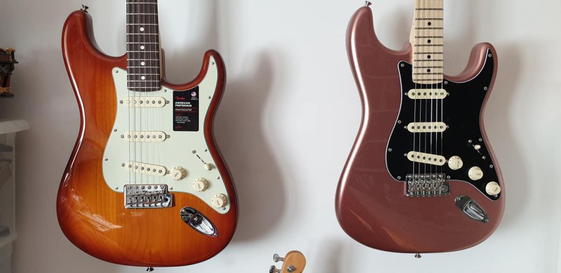 Je crois que c'était Cherry Burst. Il y en avait une avec la touche érable, et en HSS.
