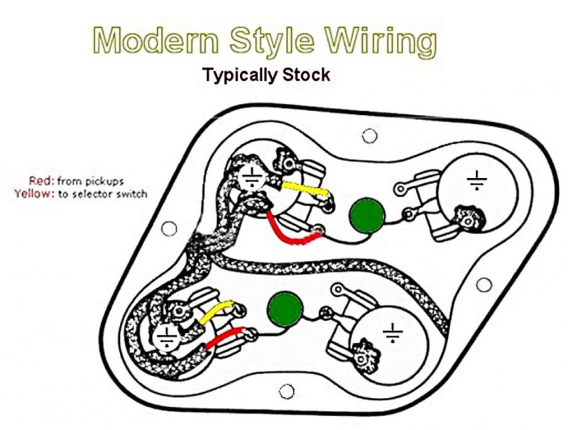 Tu le dis toi-même la difficulté de comparer les deux schémas, c'est le switch 5 positions AVANT les réglages d'un coté et le toggle switch de l'autre APRES les réglages,