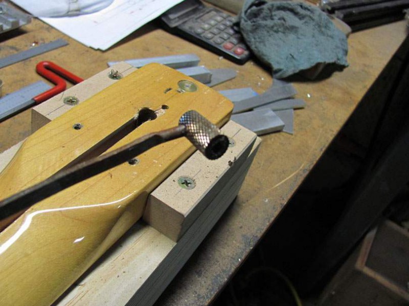 C'est pour reboucher la rainure faite pour placer le truss rod dans le manche. C'est visible sur tout les manches d'une pièce. Sans touche rapporté, qu'elle soit en érable ou en palissandre, impossible de cacher le truss rod dessus.