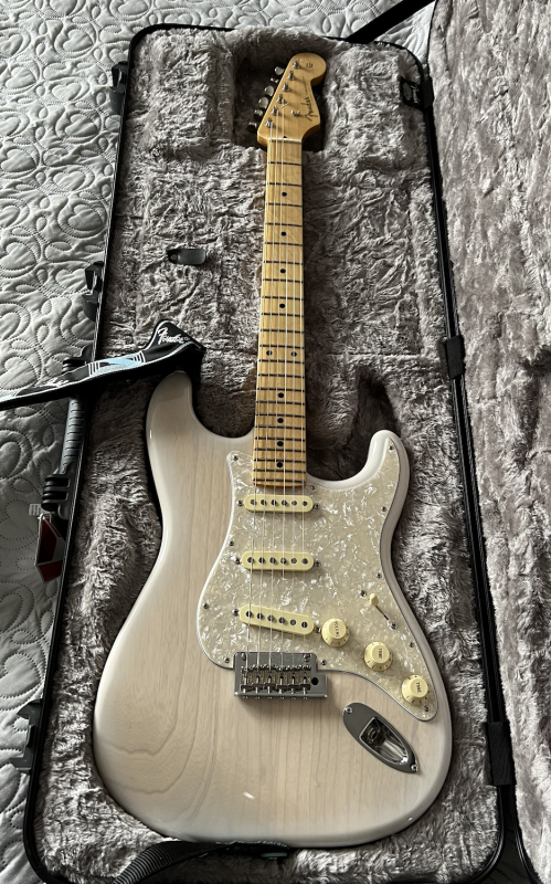 Je vous avais déjà fait part de toutes mes péripéties notamment en page 3898 de ce même sujet, en achetant une Strat Fender USA 75th Commemorative que j'ai finalement renvoyé vu les gros défauts de frettage et d'impacts dans le vernis.