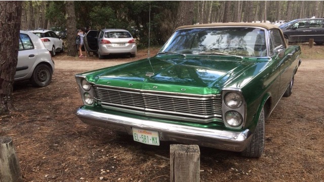Une vieille Ford sur un parking à Biscarrosse