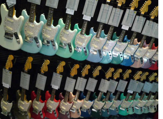 Vers 2006, au NAMM de L.A, Fender avait présenté un mur complet de Stratocasters peintes dans chaque teintes de ses « custom Colors ».