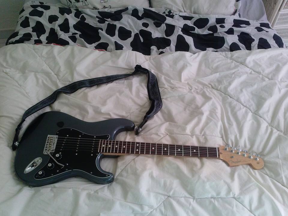 Une de mes strats que je vous présente puisqu'elle est tout juste de retour de chez le luthier. C'est une Standard USA de 2011 que j'ai fait un peu évoluer, au gré de mes envies et/ou besoins... Les modifications effectuées au fur et à mesure sont :