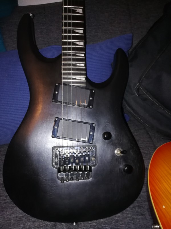 La bête à été customisée par son 1er propriétaire en rajoutant des Emg (d'où l'ajout d'un second potard je suppose).