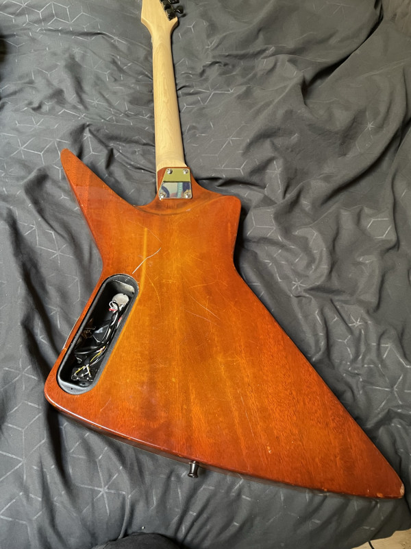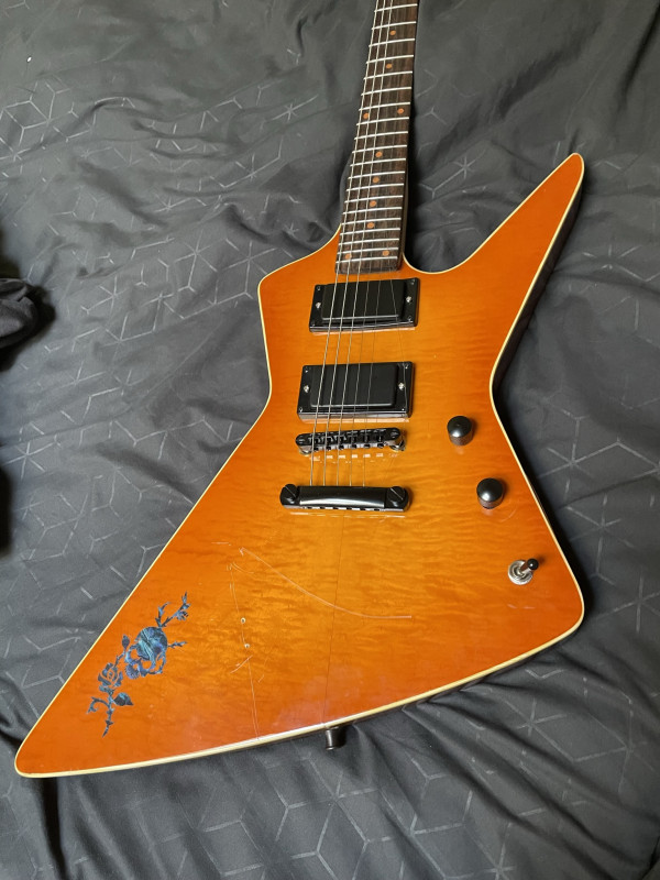 C'est une histoire particulière , car c'est une guitare dont j'ai eu seulement le corps nu, qu'une random personne avait donné à ma soeur avant que je l'a récupère car elle n'en ferai jamais rien .