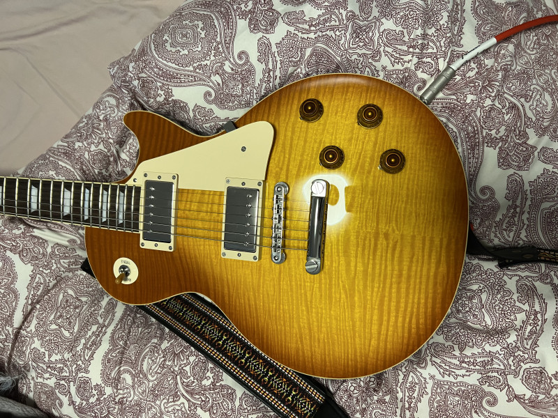 Avec un budget d’un peu plus de 2000€, j’ai ciblé la Gibson Standard, une Maybach Lester et les Tokai Love Rock (j’aime les tables flammées et je regardais donc à partir du modèle actuel LS136F).