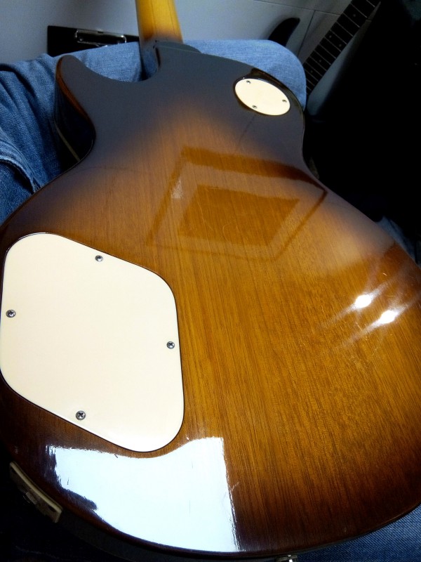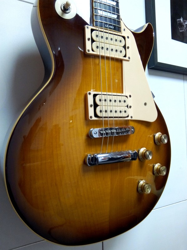 Je jouais surtout sur ma Strat avant, (une Tokai Goldstar TST-80 de 1984 avec ses DI Marzio VS1 d'origine... pas toute mal non plus!), mais j'avoue être vraiment tombé amoureux de ce profil de manche ainsi que du son des humbucker type PAF vintage... On est à des années lumières des stéréotypes que je pouvais avoir sur les doubles bobinages, avec leur son raplapla en clair et hardos en satu!