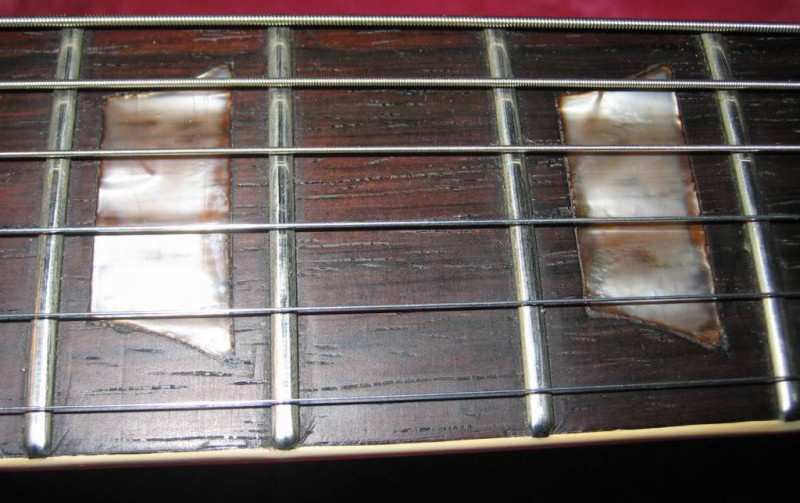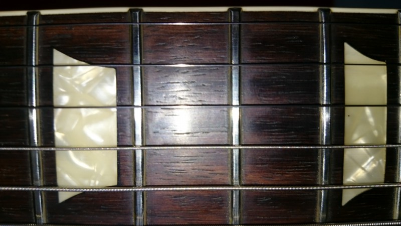 Par exemple, cette guitare à 60000 yens, a un corps d'une pièce d'acajou, caractéristique des modèles à plus de 80000 yens! Mon autre FLG-60 de 1978, a bien un corps en acajou deux pièces et la touche du manche ainsi que les inlays, n'ont vraiment rien à voir avec celle-ci.