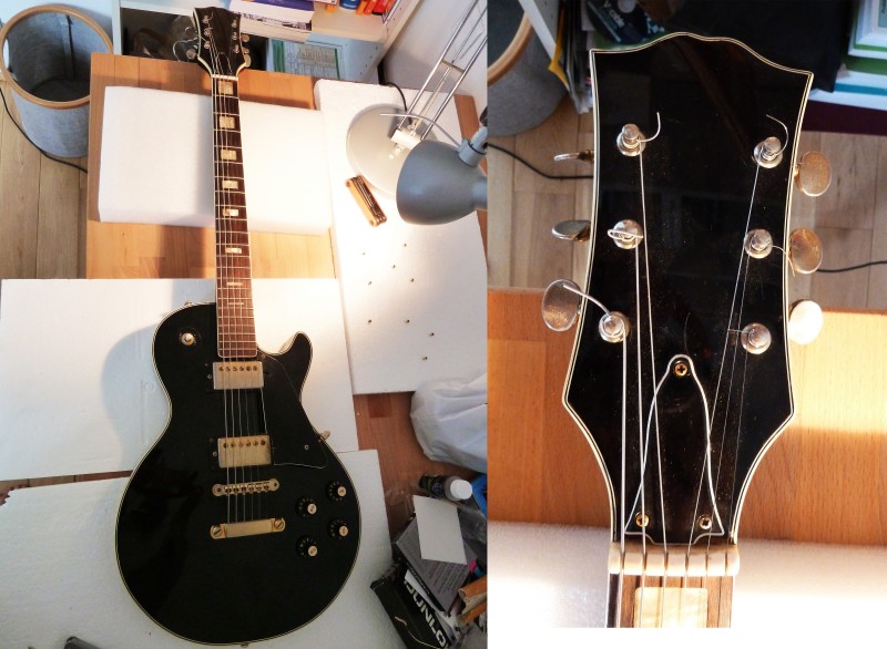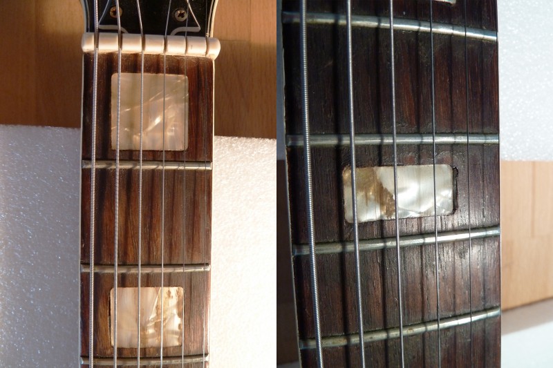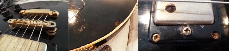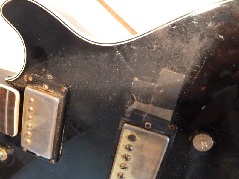 Tout à l'air d'origine (à priori) mais le micro chevalet à été manipulé (il tient avec du scotch sous le pickguard) donc je pense qu'il était dans l'autre sens à l'origine (les aimants coté chevalet)