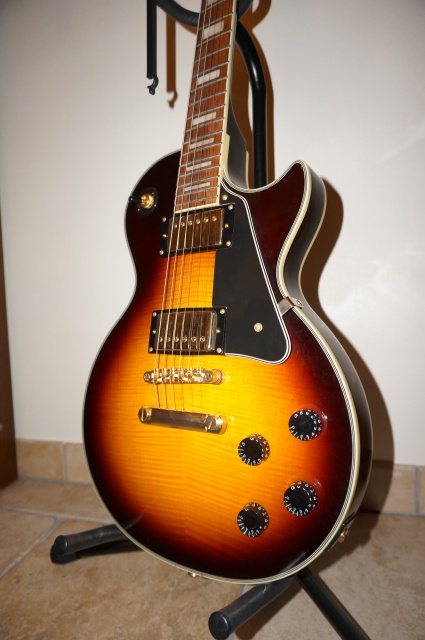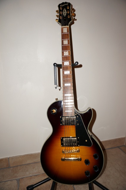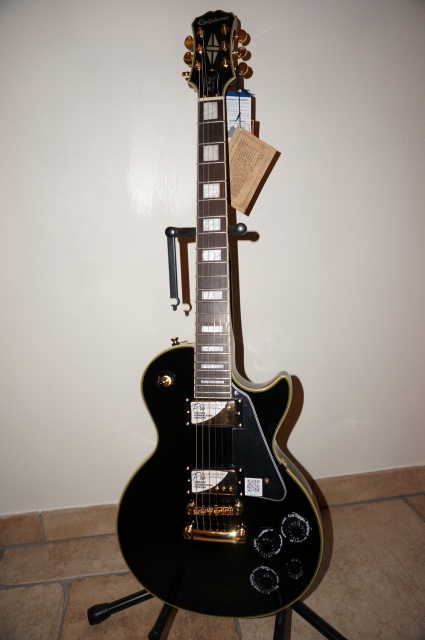 et la petite nouvelle depuis la semaine passee, une affaire, 327 euros neuve sur wood....une EPI LP Custom Pro 2016 en ProBucker avec le switch et les coil taping