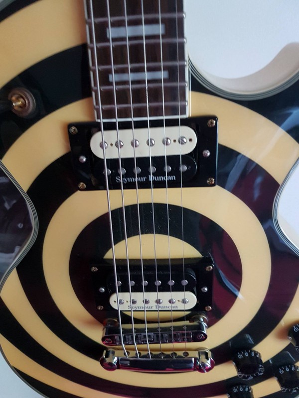 * Tout est d'origine sauf les micros (ou alors il est pas au courant et c'est son luthier qui l'a fait)