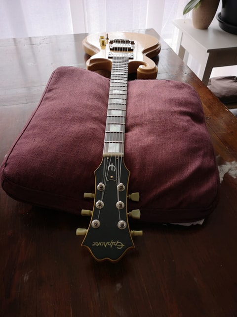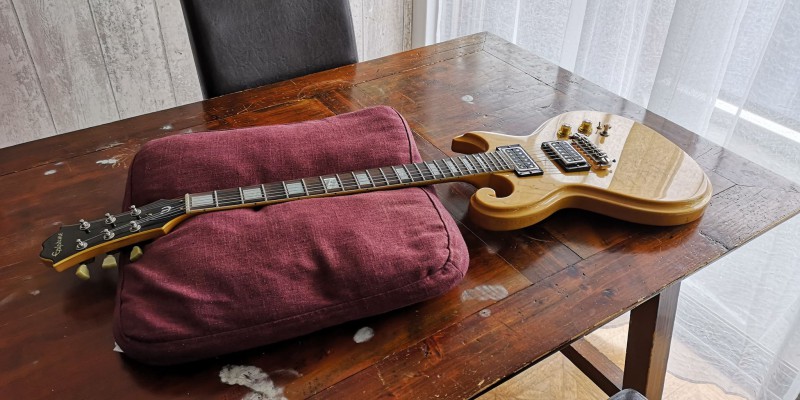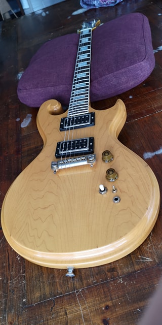 Je l'ai prise sur leboncoin en effet, 640€ avec étui après négociations. J'avais craqué sur ce modèle quand j'avais 16 ans, j'ai attendu quelques années pour l'avoir mais finalement je suis bien heureux. Elle est finalement assez éloignée d'une LP, full érable, touche ébène, et les micros, ce sont des Duesenberg grand vintage en chevalet et D-tron en neck. Étonnamment, moi qui joue de la musique énervée type Pantera et compagnie, le son colle bien, bien gras, et le crunch est sublime. Le split de micros change pas mal le niveau de sortie mais on en obtient des cleans très convainquants. On a de la chance que de notre partie du globe cette guitare coûte peu chère, car elle est vraiment spéciale et rare, le manche est exactement pareil que ma mockingbird japonaise de 82, et c'est justement le point principal que je recherchais, et je me suis tenté à dire que ce modèle pourrait me combler tout autant, au final j'ai bien fait.
