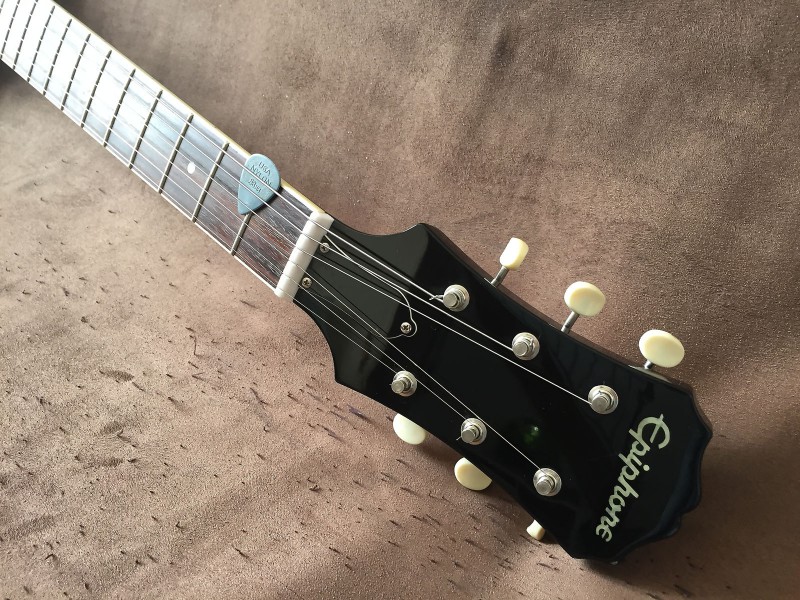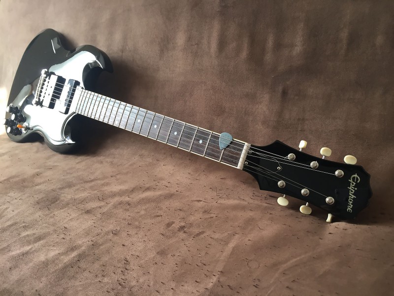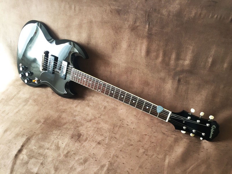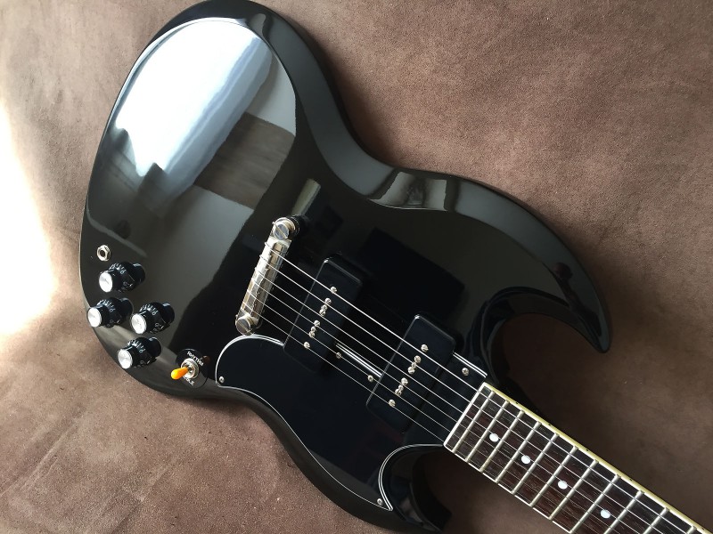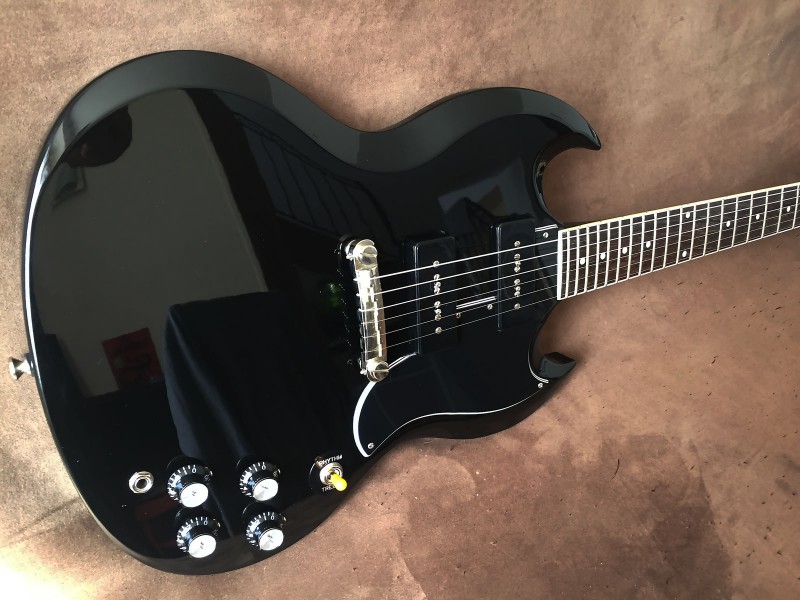 Je l'aurais voulue white, mais parfaitement introuvable, alors puisque j'ai déjà une Jr en cherry, je me suis rabattu sur le parfait opposé de ma quête de départ, et je l'ai prise en black: ma SG 1961 50th anniversary est arrivée à la maison. Voyage mouvementé depuis l'Angleterre. Enfin mouvementé, une fois le channel franchit, les choses ont été compliquées... en France.