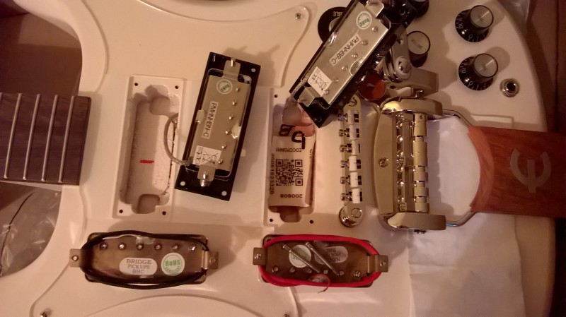 Par contre, je l'ai essayé vite fait avec les cordes d'origines et micros pas réglés en hauteur et les micros me semblent plutôt prometteurs (plus de caractère que la Ri '62). Je ne peux pas juger comme ça aussi rapidement sur une guitare pas réglée correctement mais j'ai une bonne première impression.