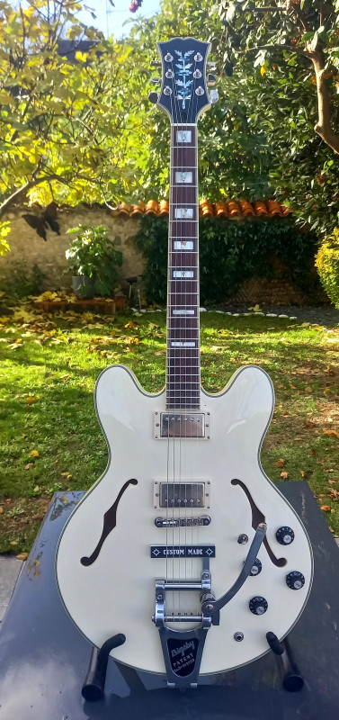 Mais à la fin ca redonne vie à cette sheraton de 93, et franchement elle sonne superbement. Un régal à jouer, c'est une guitare très "claire", plutôt médium, moins bassy que les gibson. Pour au final moitié du prix d'une bonne 335 d'aujourd'hui.