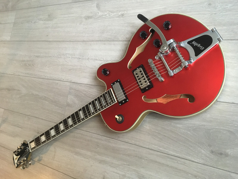 J'ai ajouté un bigsby parce que j'en ai toujours eu envie sur mes guitares et pour avoir un équilibre (j'ai toujours eu un probleme avec les epi qui ont la tete qui plonge).