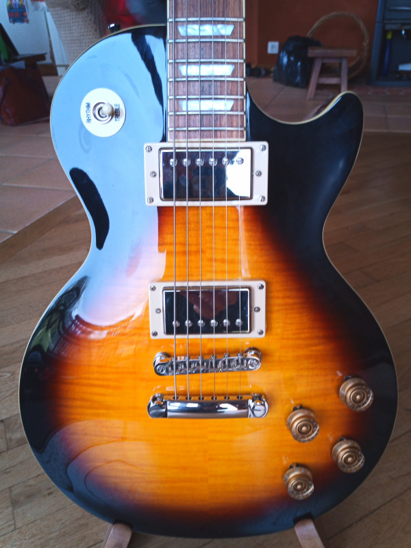 Pour la petite histoire, j’ai revendu une Gibson Tribute de 2017 pour la remplacer par une Epiphone 1959, et heureusement je ne regrette, mais alors, pas du tout ma décision…
