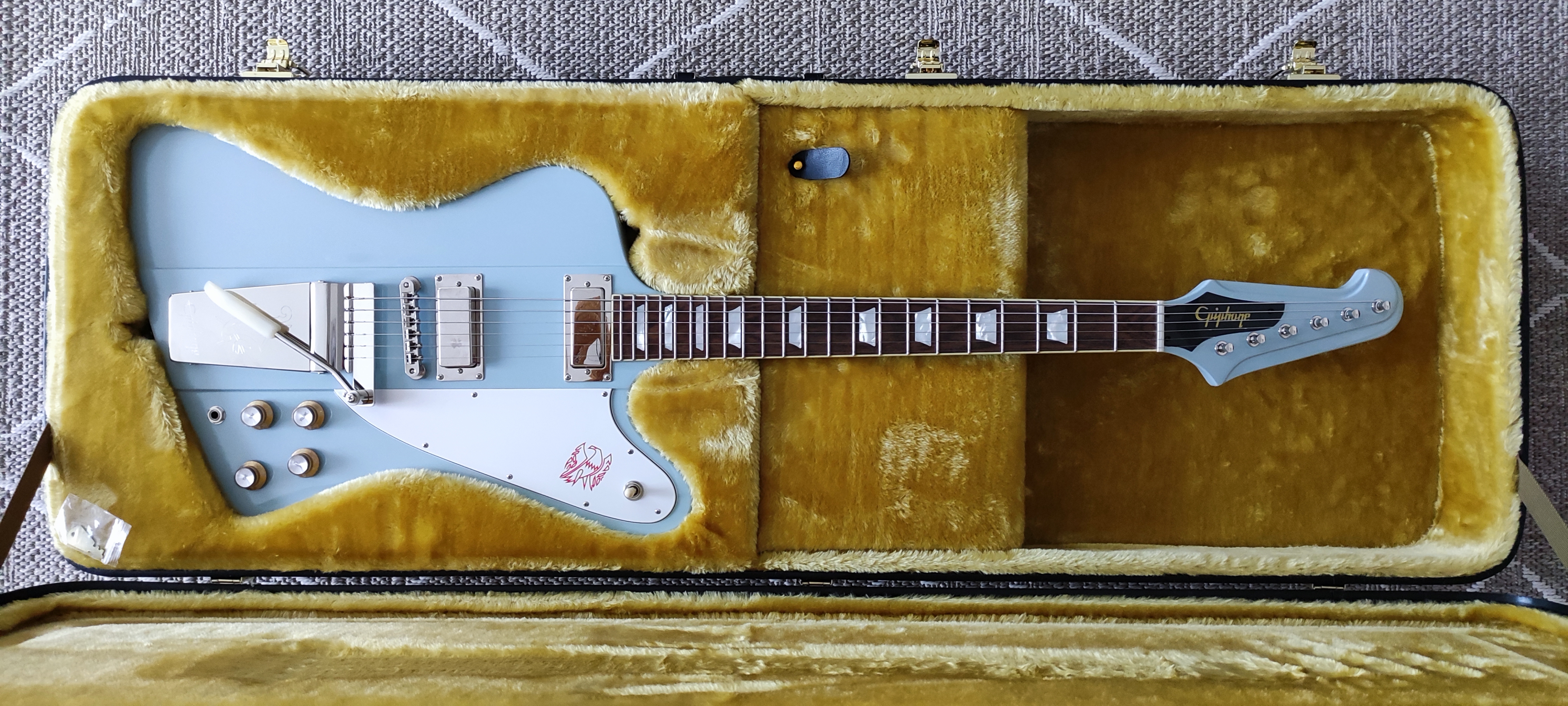 Quant le dernier modèle Epiphone firebird 63 est sorti, j'ai pris le risque de l'acheter même si le prix me paraissait exagéré au premier abord...