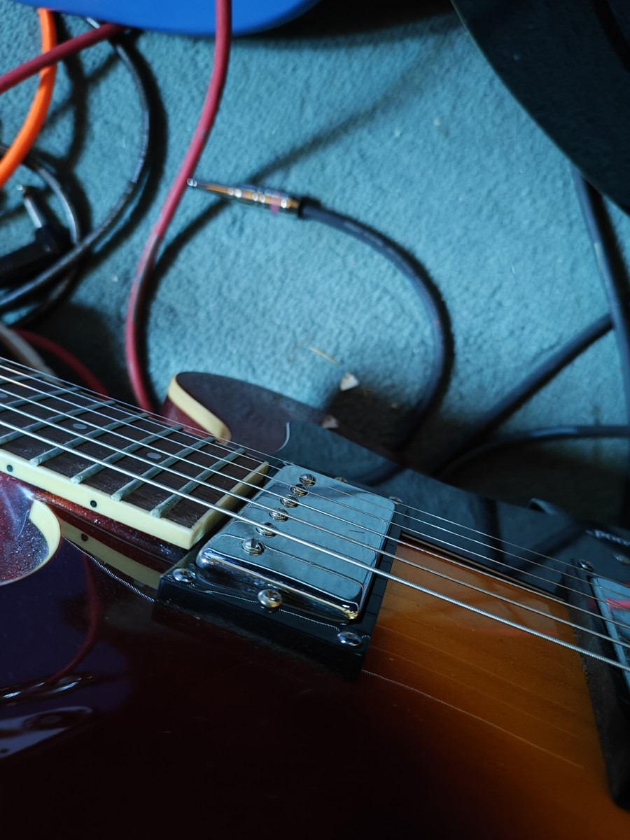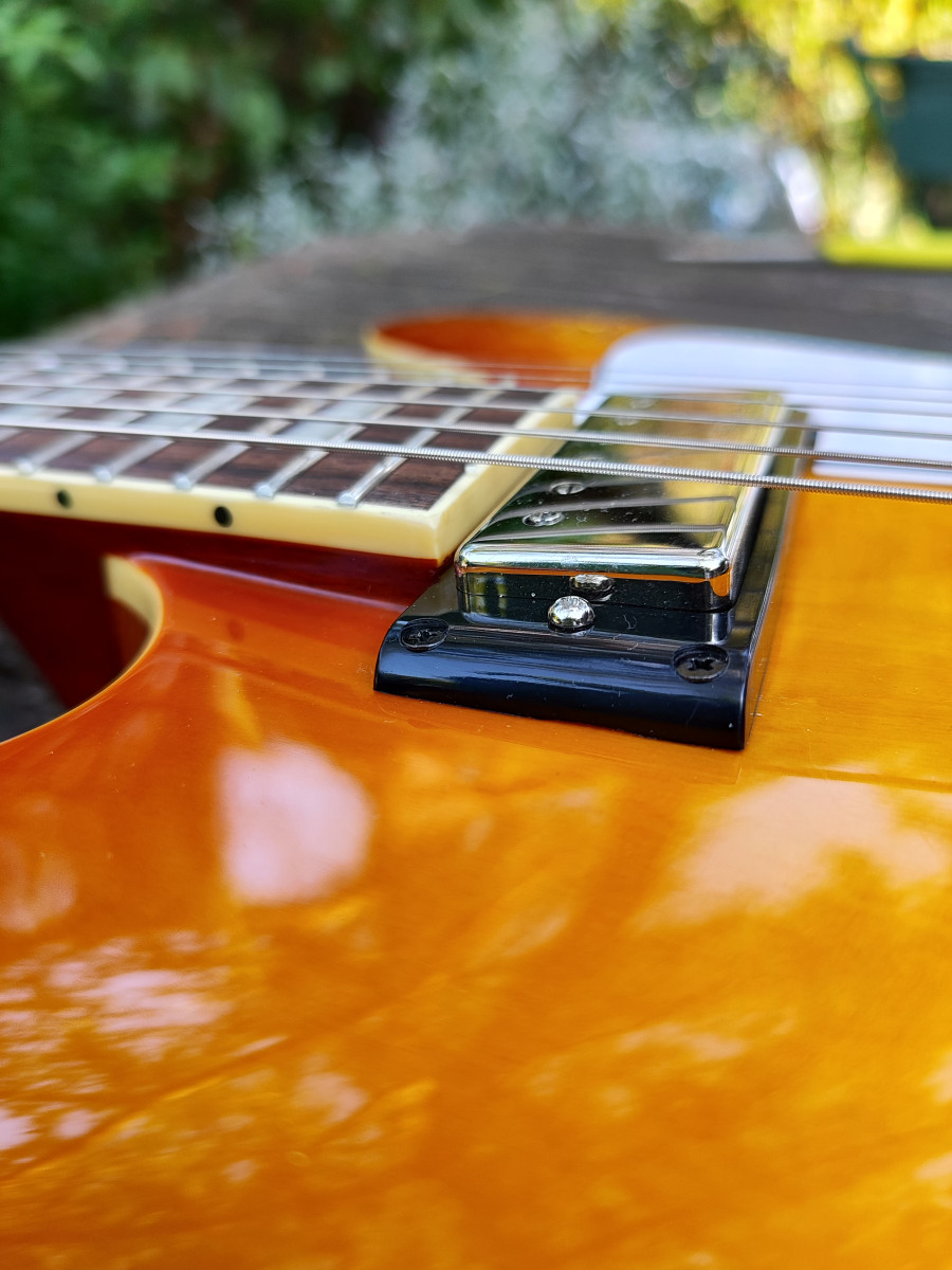 Je me demande si je ne vais pas complétement finir de la poncer pour la mettre en blonde et rafraîchir l'électronique. Les micros sont des Seymour Duncan.