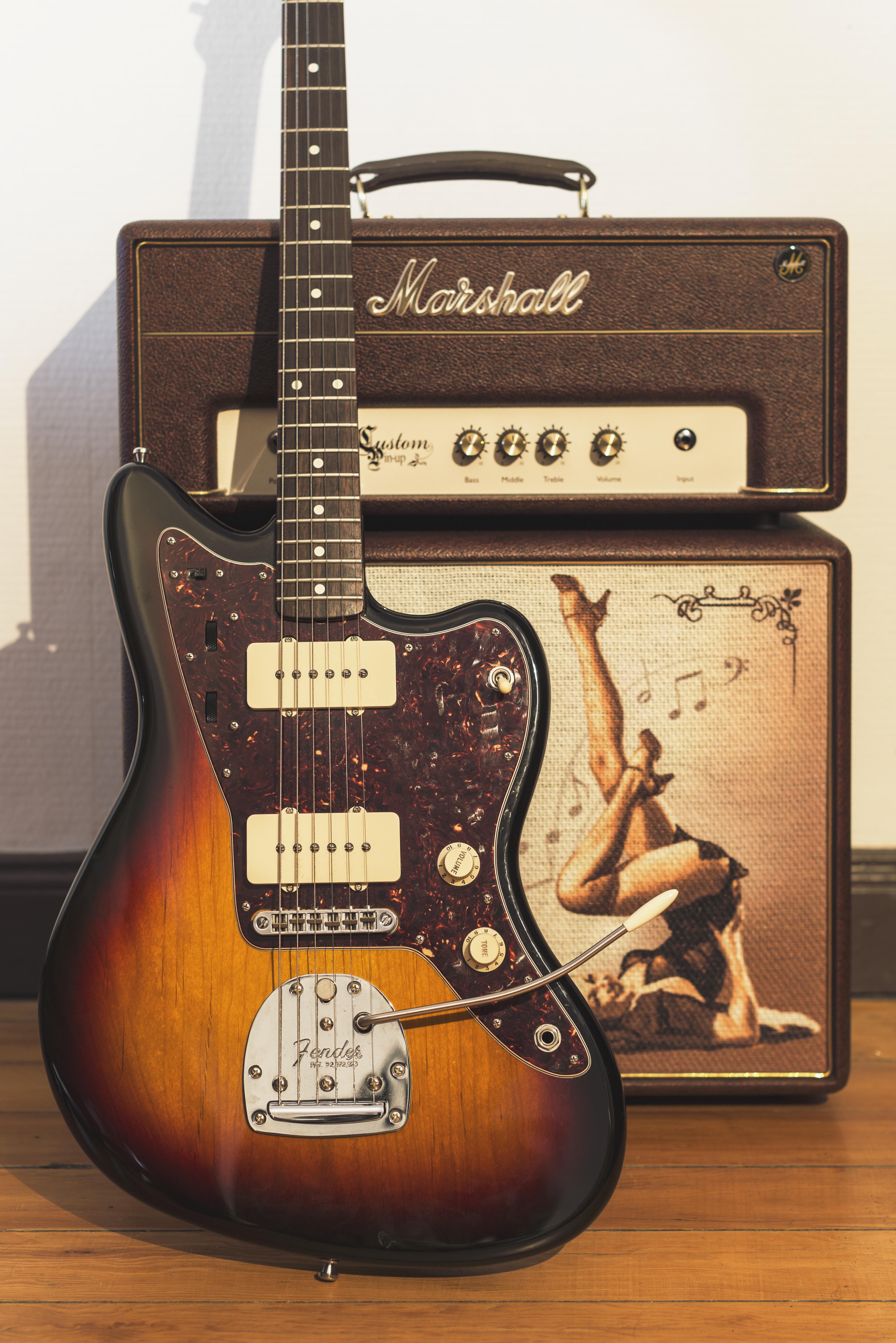 ca faisait un moment que j'avais envie de tester une jazzmaster et je suis tombé dessus par hasard chez mon revendeur. j'etais parti commandé une gratte, et en attendant j'ai vu cette petite jazz d'occaz, j'ai testé et je suis reparti avec. un grain vraiment a part. elle aurait un vernis nitro, elle serait parfaite