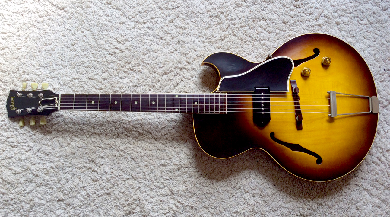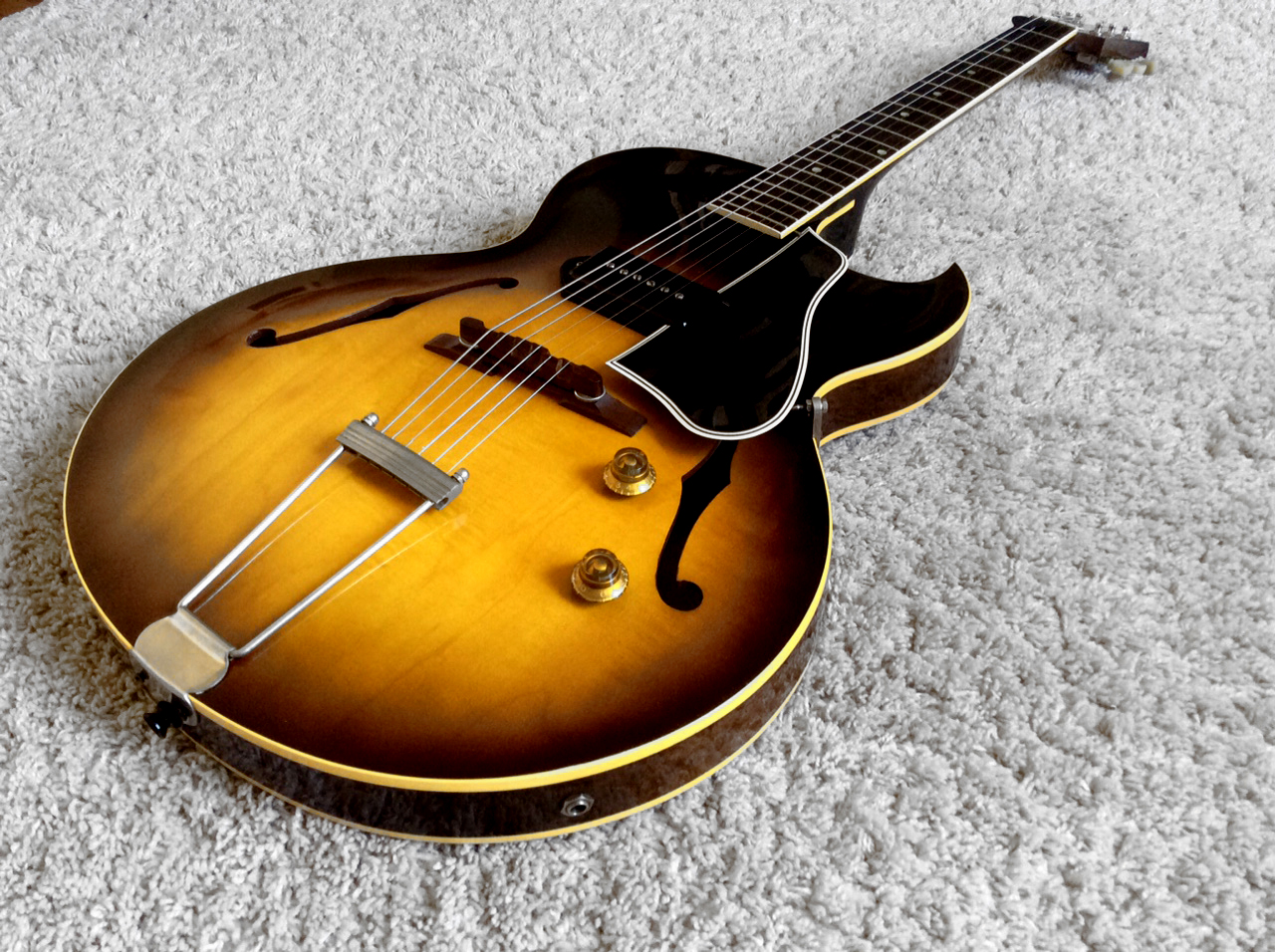 Pas 335, mais ancêtre (de quelques 4 ou 5 ans) de la série des 300, l'ES225 est la première thinline de chez Gibson. Elle en fixe déjà le dessin de la caisse avec sa large croupe arrondie, mais garde une découpe florentine très accessible.