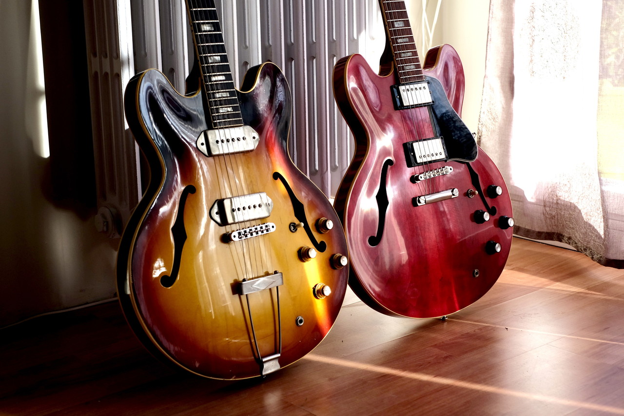 Mais bon, je sens que je vais craquer un de ces jours. Je crois que je pourrais finir avec les deux guitares de ta photo, c'est définitivement les deux guitares ultimes pour moi (et je garderai aussi la Casino). Avec ça, je couvre tout le répertoire que j'aime, avec des instruments que je trouve magnifiques et inspirant.