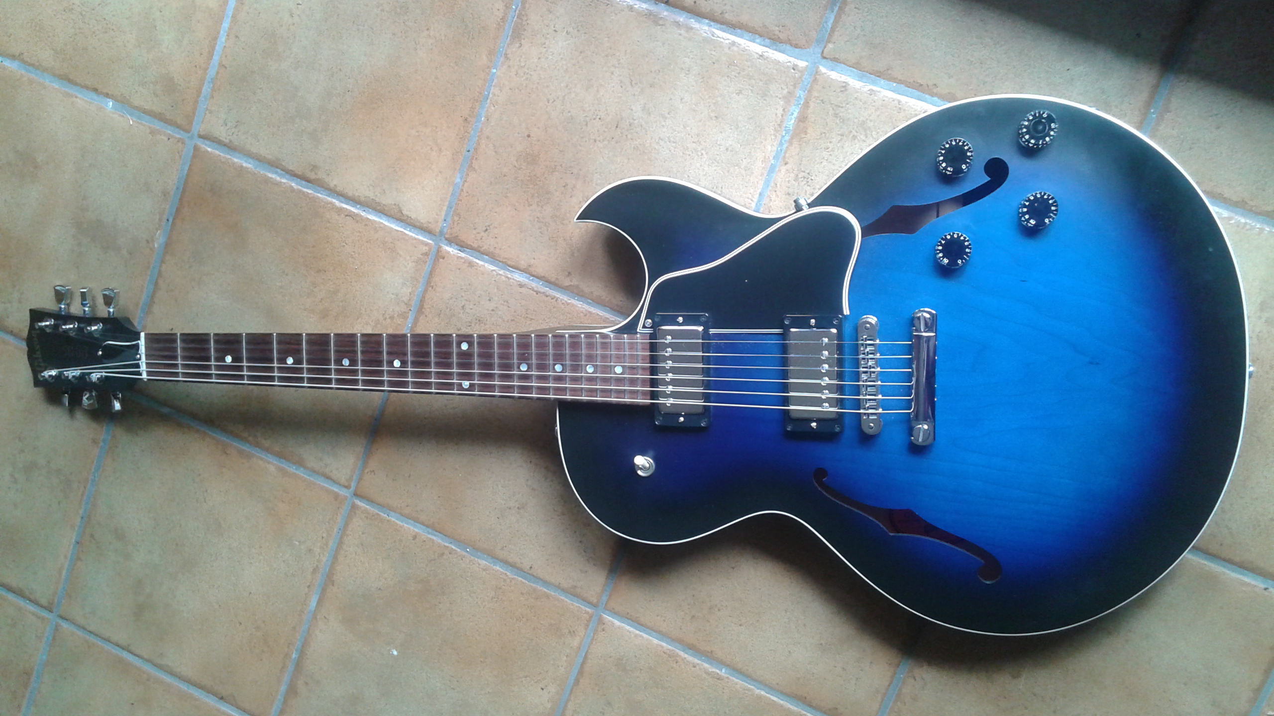Merci, c'est vraiment pas facile de prendre une photo de guitare en lumière naturelle (conserver une teinte fidèle, éviter les reflets, garder du contraste...).