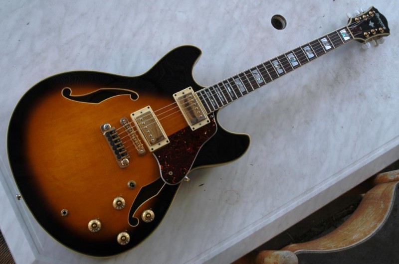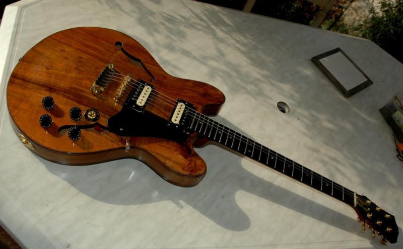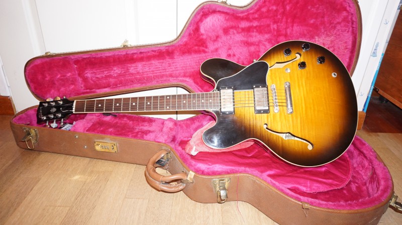 En 2000, je pars à l'étranger et je revends plein de choses que je ne pourrai pas prendre avec moi, dont cette Sheraton. Entretemps, j'avais fait un stage de lutherie avec Xavier Petit (RIP) et j'avais choisi comme guitare, devinez quoi, une ES 335. Par contre, celle-là, je l'ai toujours, la voilà :