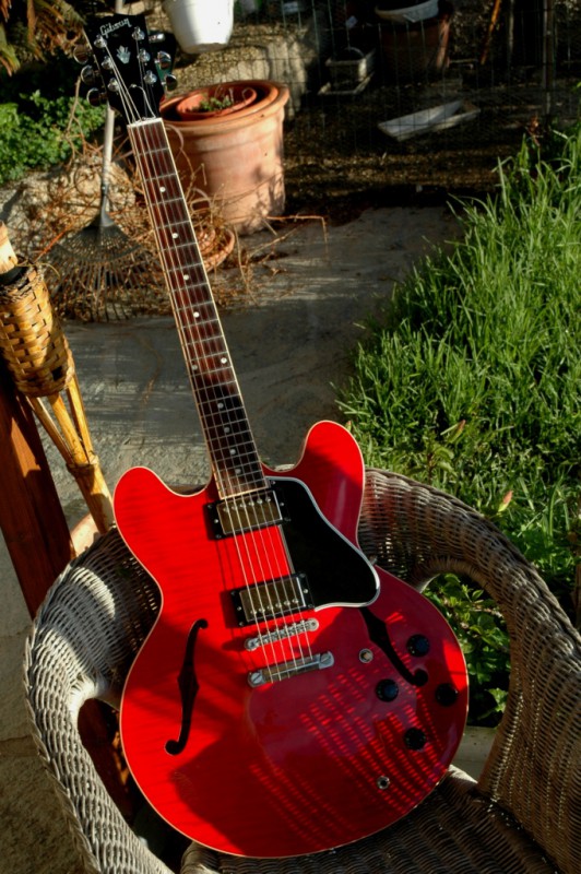 Après des années d'errance et d'hésitations, je suis enfin possesseur d'une Gibson ES 335, ce qui est la raison de ma présence ici. C'est l'aboutissement d'une longue quête. Je ne sais pas vraiment pourquoi, mais cette guitare (pas spécialement la Gibson, mais le type ES 335 en général) m'a toujours attiré. Je dirais que c'est charnel. Il faudrait peut-être que je consulte. Oh puis non après tout, je m'en fous.