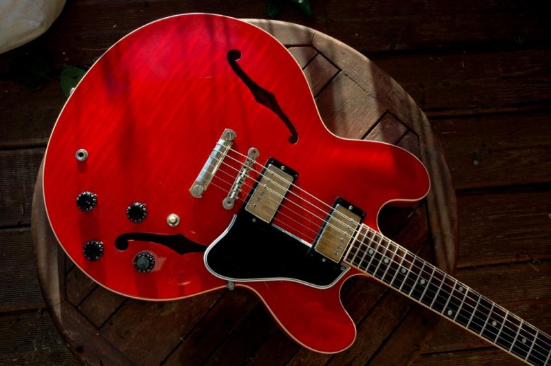 Ca a commencé au début des années 80, quand je me suis payé ma première guitare de bonne qualité (les deux précédentes ont été d'improbables copies bon marché à la jouabilité douteuse et rappelant vaguement certaines Fender, mais je ne pourrais même pas dire lesquelles). C'était une Aria Pro II TA50, made in Japan. Pas tout à fait une 335-like car pas de poutre centrale, manche vissé, corps plus petit et de forme sensiblement différente, mais on est quand même assez dans l'esprit.