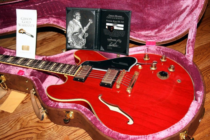 C'est marrant, pour moi Freddy King, j'ai plus des "souvenirs photos" de lui avec sa 345 Walnut et cordier trapèze ou encore et surtout avec sa 345 sherry red avec vibrato lyre, modèle 74.