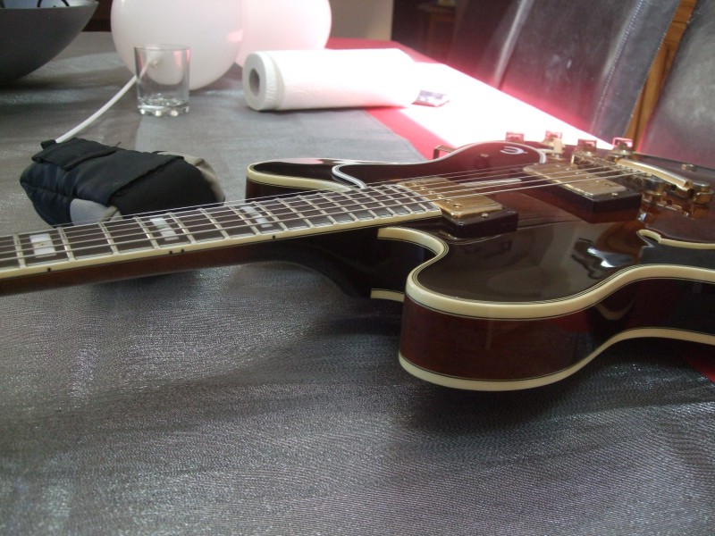 Ce que j'attends... La guitare m'est réservée jusqu'au 15 juin, date à laquelle je dois donner ma réponse définitive. Après quoi, il faudra que j'arrive à vendre ma 335 '87 pour financer un bout de celle là.... Le vendeur, qui est l'oncle d'un ami me l'a confiée une semaine pour que j'ai le temps de faire connaissance, mais au 3eme accord, je savais déjà que j'avais une merveille dans les mains (le premier accord m'avait soufflé et le second époustouflé).