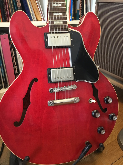 Ces 335 RI '63 VOS sont vraiment magnifiques sur tous les plans. La plus belle guitare que j'ai jamais possédé. Quand on a ça dans les pognes, il se passe un truc. N'en déplaise à tous les pisse froids qui se répandent sur le sujet "faillite Gibson"...