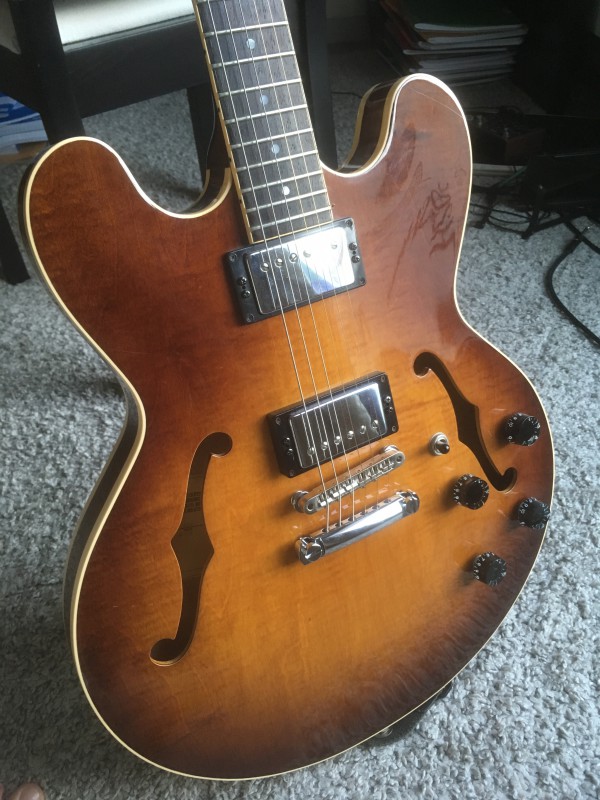 Je tiens à dire que je n'ai pas vraiment une culture du câblage historique d'un collectionneur mais personnellement j'ai monté une Hollow Body Ibanez AFJ 95, mon ES 339 Gibi, ma Yam' SA 2000, et une Epi Dot avec le câblage suivant.