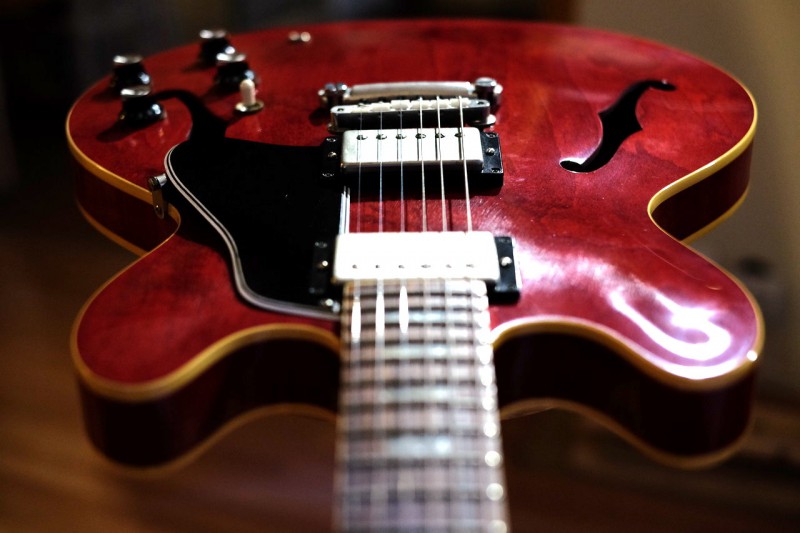 Donc voilà mon ES 335 tdc 1963 60´ cherry « Wildwood version » acheté chez Peach Guitars est en vente, elle à fait un petit tour chez le luthier avant le début de l’été donc réglage aux petits oignons (du moins pour moi).