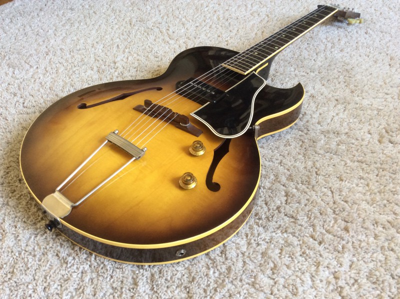 Pas de poutre mais un bloc central sous le tune-o-matic et le micro chevalet, le reste de la caisse est full-hollow autour de ce bloc de bois qui sur la mienne ressemble plus à de l’acajou qu’a du balsa...
