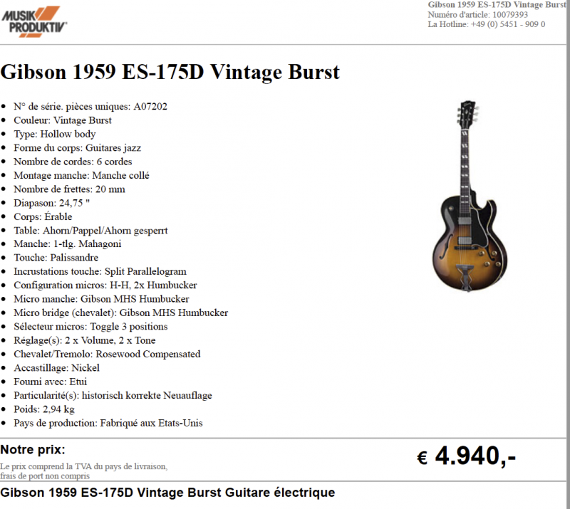 Il y a des ES 175 des 60's parfois presque au même prix que des récentes ? Des copies japonaises d'Hollowbodies Gibson à plus de 2500 dollars