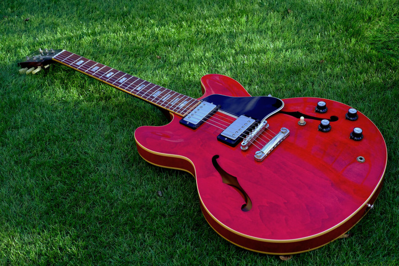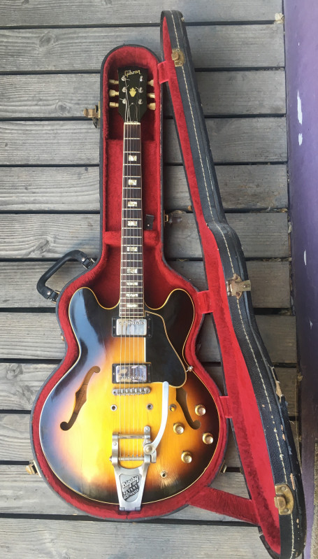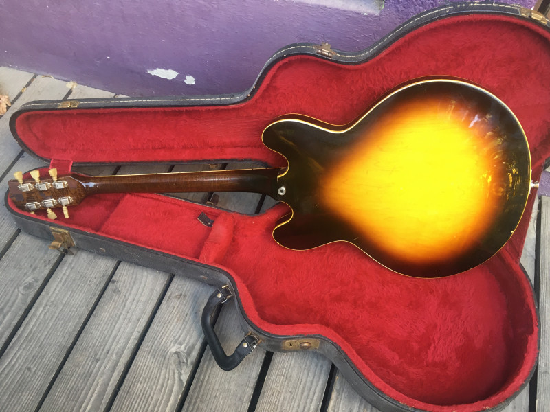 Le modele : ES-335 Original Figured - Iced Tea (sur la photo le contour paraît rouge mais il est marron à la lumière du jour)