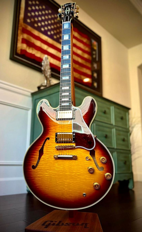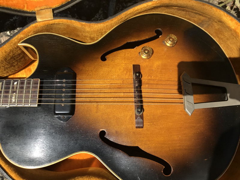 Il me la tend, je m’en saisi… la guitare est surprenante de légèreté, incroyablement facile à jouer, et me réclame d’être branchée mais pas possible…