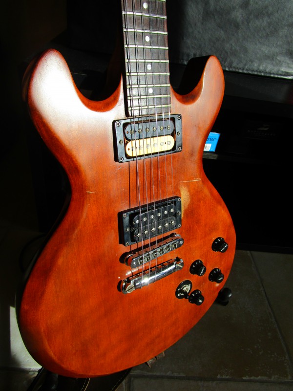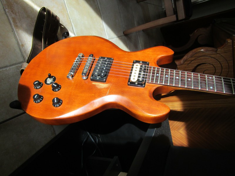 Corps 2 pièces érable, manche 3 pièces érable aussi, touche palissandre, deux humbuckers dont le bridge pas d'origine de marque à déterminer.