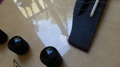 La tole du chevalet semble plus fine que celle des fendez et les pontets ne sont pas en laiton.
