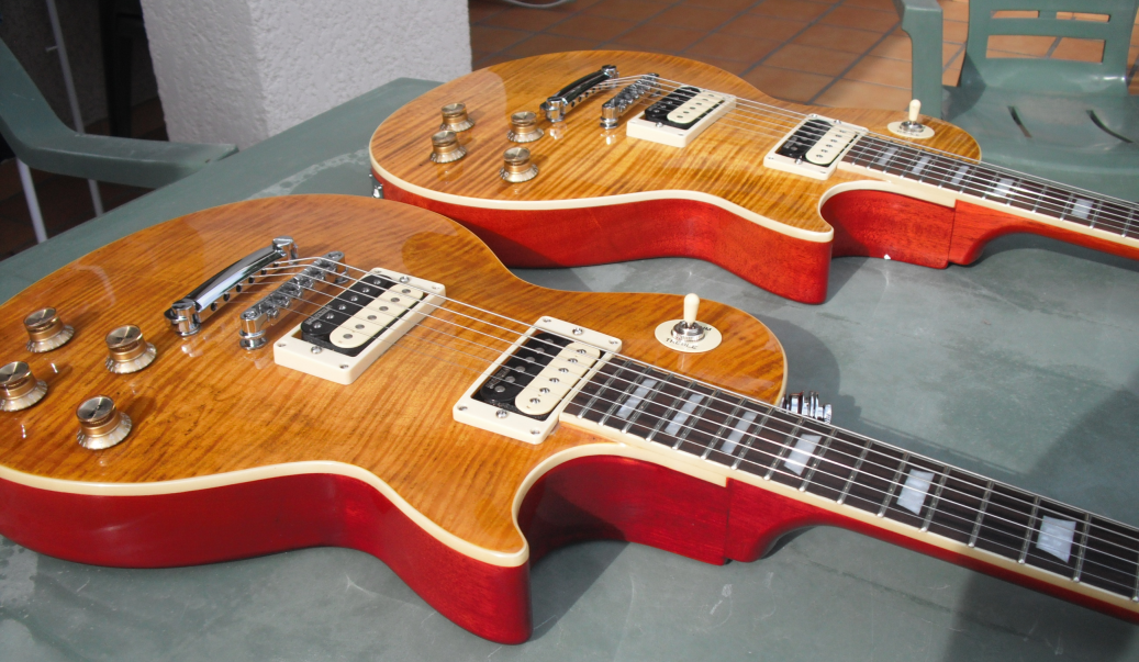 même la finition des éclisses et du dos est plus claire (le rouge vin est beaucoup plus foncé sur l'autre)