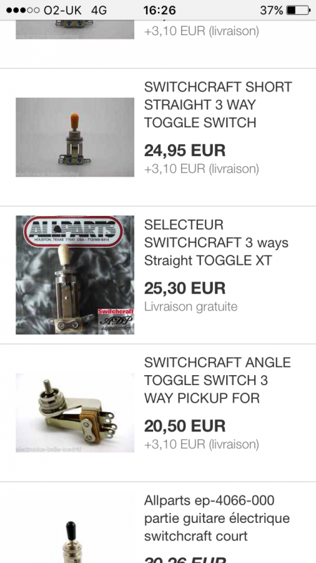 Sur eBay France, UK et mêmes sur les sites webs du vendeurs le toggle switchcraft c'est entre 15-25 euros. Parfois 30 euros. Comme j'ai dit, c'est possible que nos marchés sont différent mais je doute la différence est énorme. Le marché français est notre deuxième marché