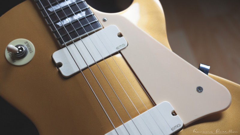 Mais je n'y ai jamais trouvé mon compte. J'ai essayé avec plusieurs paires de micros : SD / SD Antiquity et EMG (!)... Rien n'y faisait, cette gratte sonnait très moyennement.