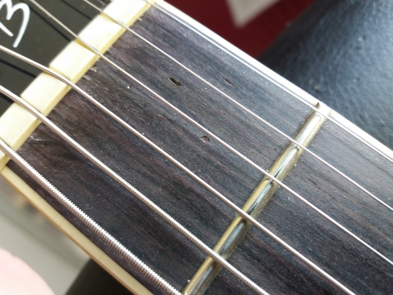 Après un p'tit polissage; le frettage est nickel, (très peu utilisée cette gratte ...).
