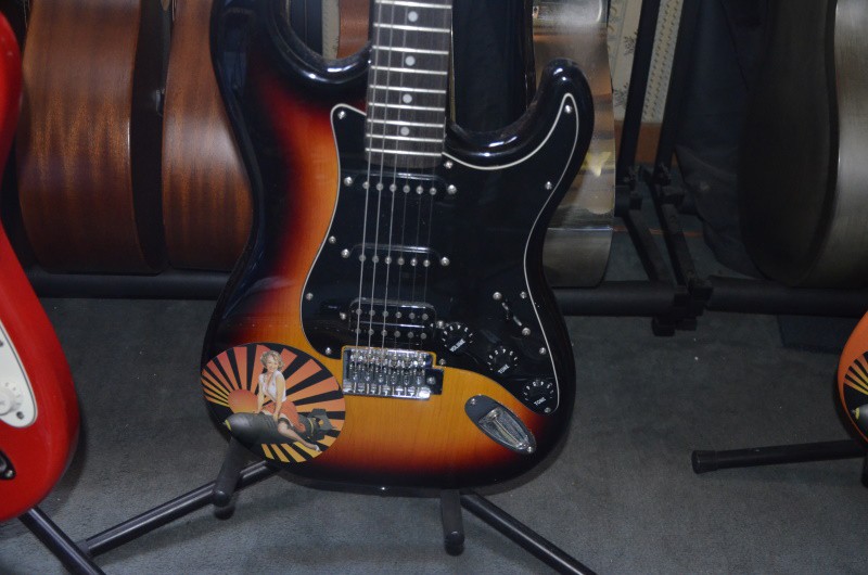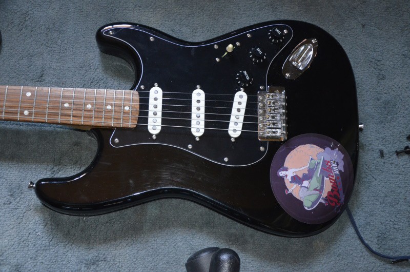 pour la ST 20 a 79 Euros j ai gardé le corps + vib bloqué + blindage , une plaque récup de SQUIER HSS AFFINITY 0 euros , un manche chine copie SQUIER 30 Euros mecas HB st 20 .