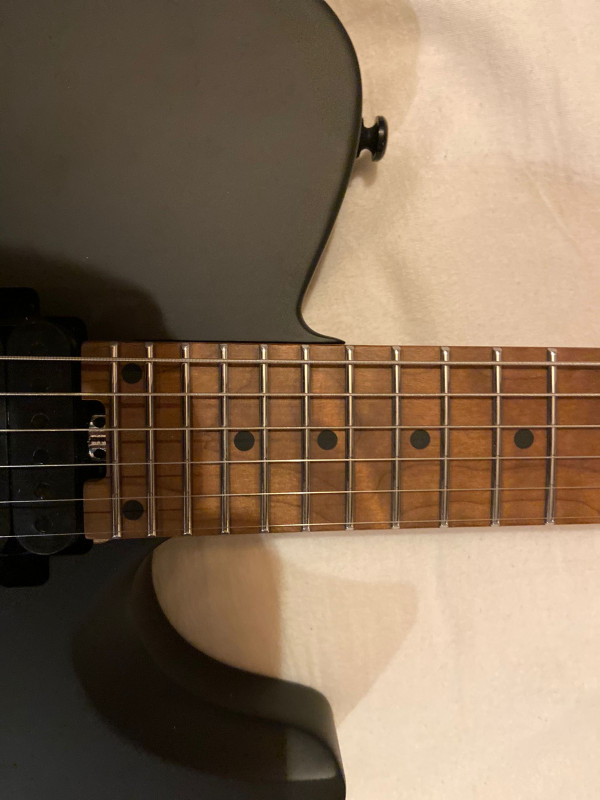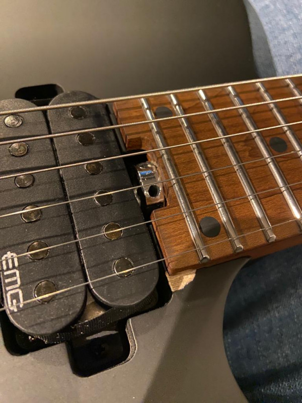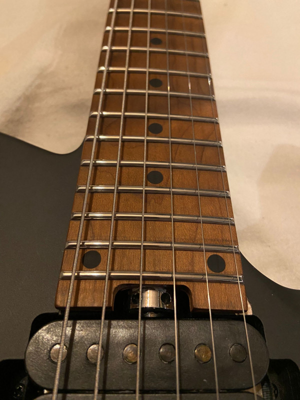 Au premier abord, celle-ci rendait plutôt bien: EMG vraiment pas mal, manche torréfié tout beau. RAS au niveaux des frettes...