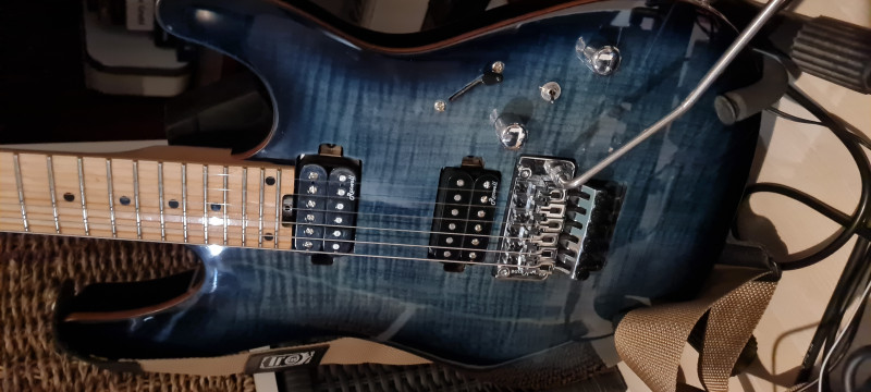 Réglage globale de la gratte. J'ai baissé l'action à la limite de la frise en respectant le radius et rajusté l'intonation. J'ai changé les mécaniques pour des plus douces et progressives.